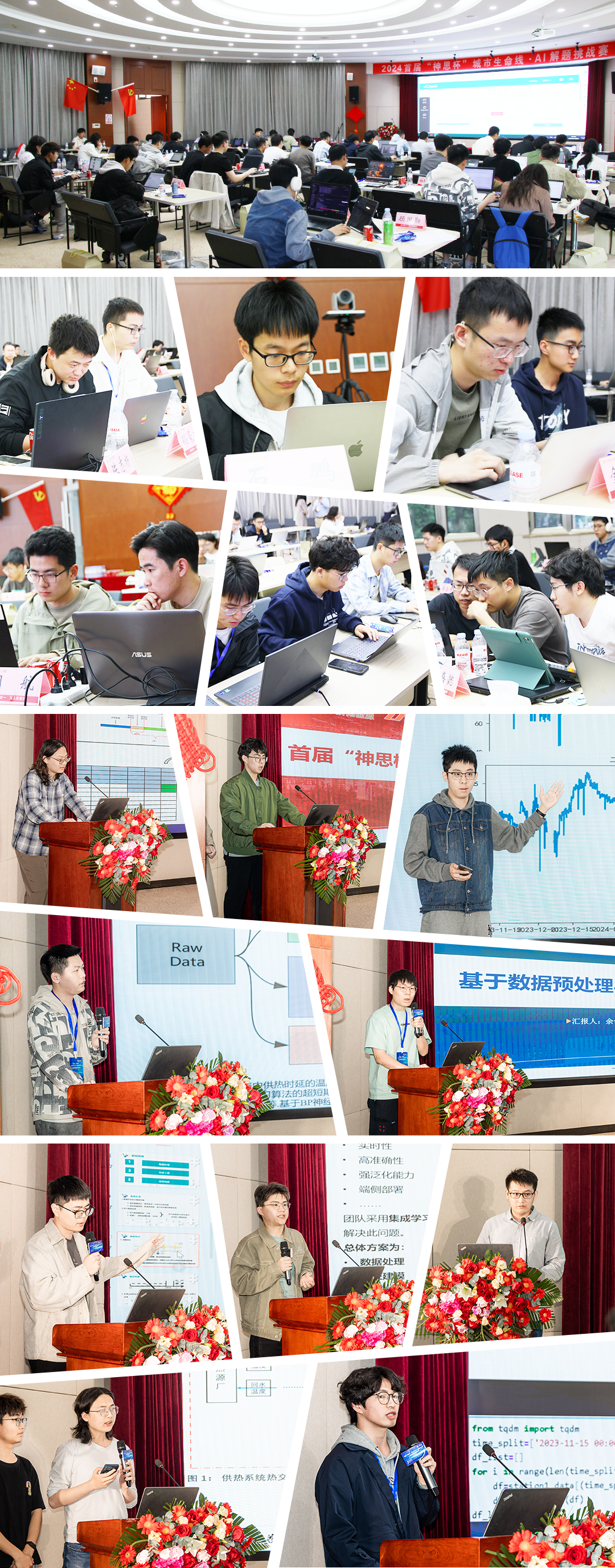 現場下發賽題圍繞精準供熱的場景,探索用AI調節小區換熱站的流量以實現供需平衡。選手們通過數據分析、算法設計、編程計算等解題方式完成系列頗具挑戰的任務。答辯現場,選手們逐一介紹了各隊的解題思路、算法技術實現和應用前景,展示出靈活創新思維和高水平邏輯思維能力。