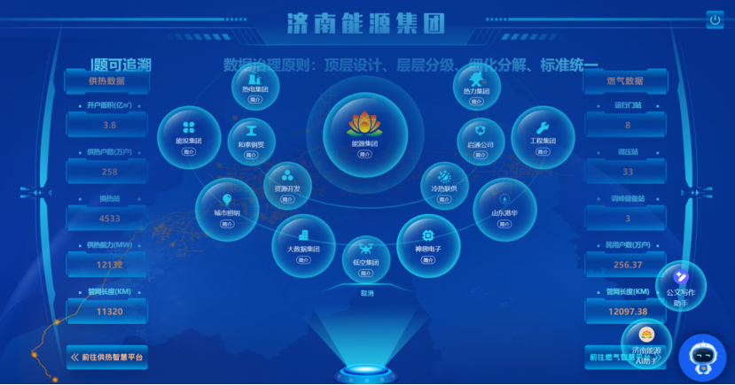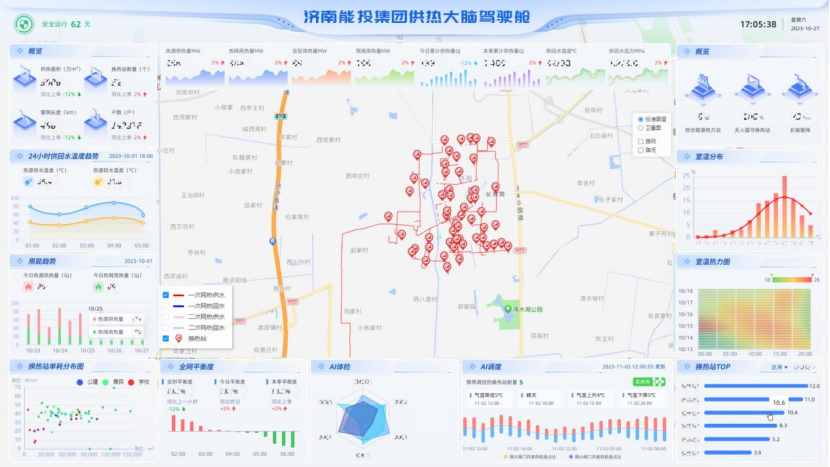 為助力節能減排、促進綠色發展,針對北方供熱管網大、滯后長、難精調、能耗高等痛點,神思電子以熱力“源-網-端”全過程中產生的海量數據為基礎,研發核心數據體檢、負荷預測、均衡調控等算法,構建智慧供熱大腦平臺,通過高精度仿真計算、資源治理和優化、能源合理高效輸配等形成有效的生產調度決策。在濟南市商河縣開展應用示范,實現供熱智慧監管、智慧運營、智慧調控,構建綠色高效供熱系統。